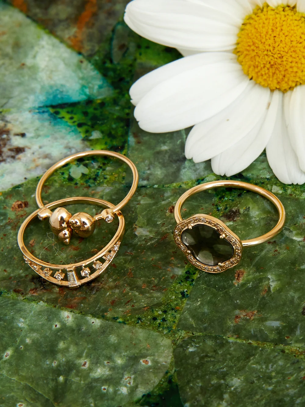 La bague Stella Diamant gris Céline Daoust en or jaune 14 carats. Chaque pierre précieuse a été sélectionnée à la main par Céline lors de ses voyages à l'étranger.