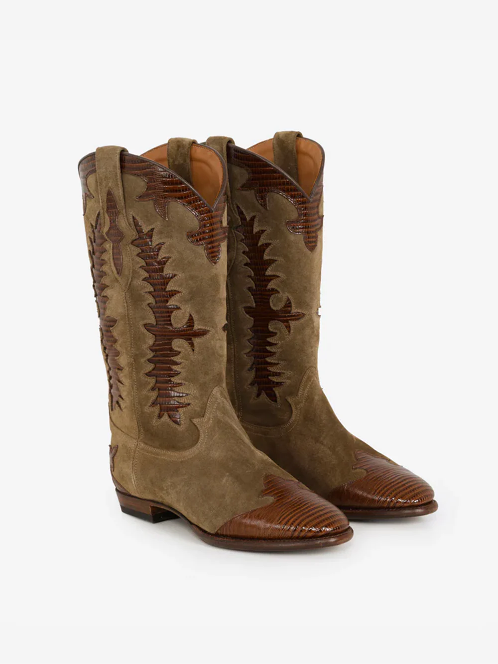 Ces bottes Santiags en Cuir et Daim de la marque Shiloh Heritage sont entièrement fabriquées à la main en Espagne dans un atelier traditionnel et familial.