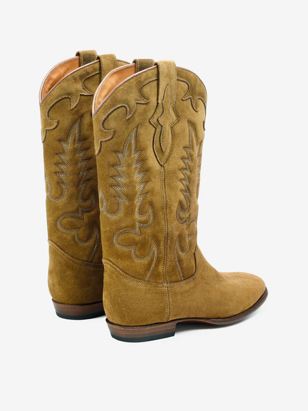 Ces bottes Santiags en Daim de la marque Shiloh Heritage sont entièrement fabriquées à la main en Espagne dans un atelier traditionnel et familial.