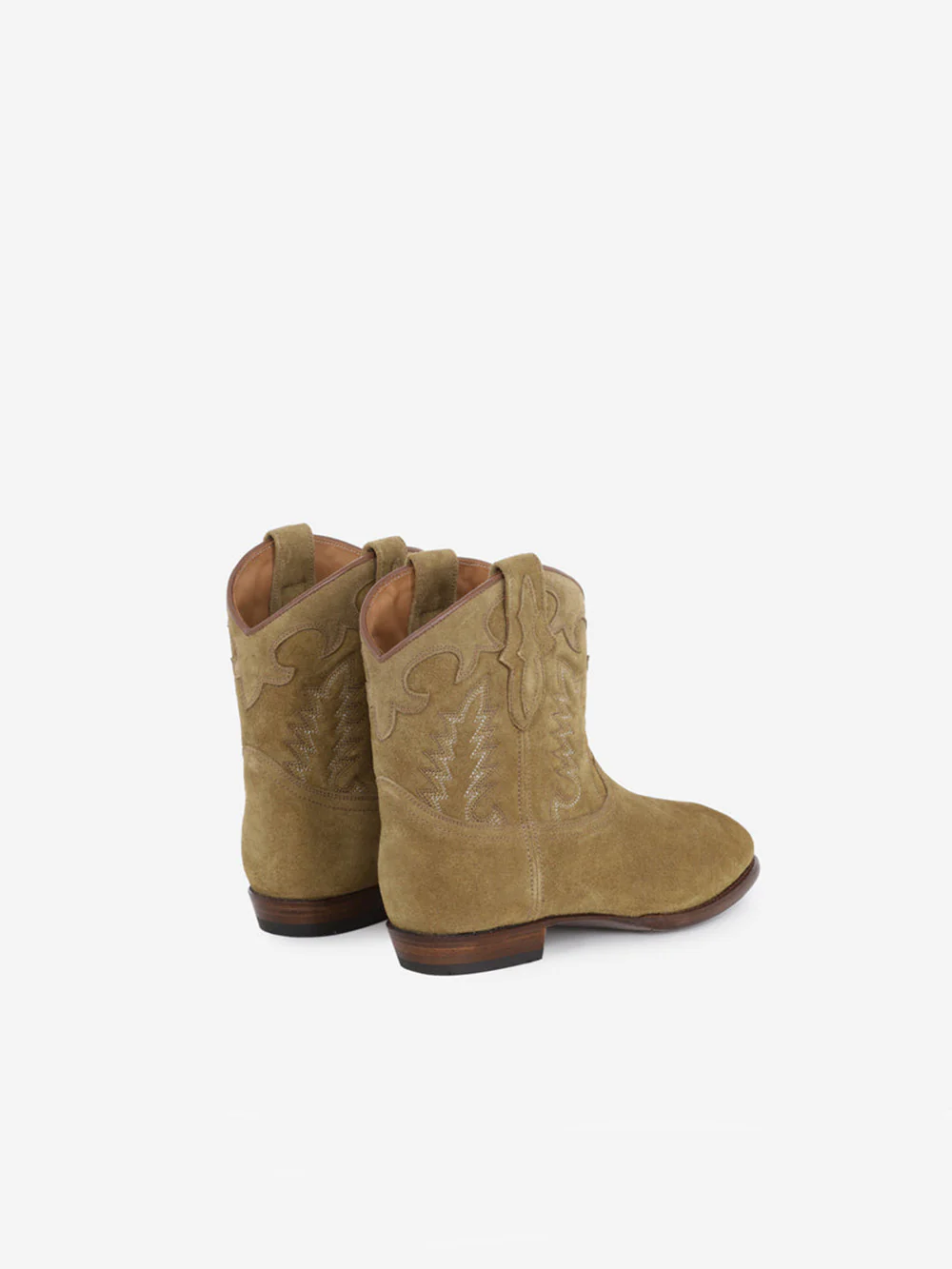 Les bottines Santiag Early Midnight Camel en daim de la marque Shiloh Heritage sont entiÚrement fabriquées à la main.