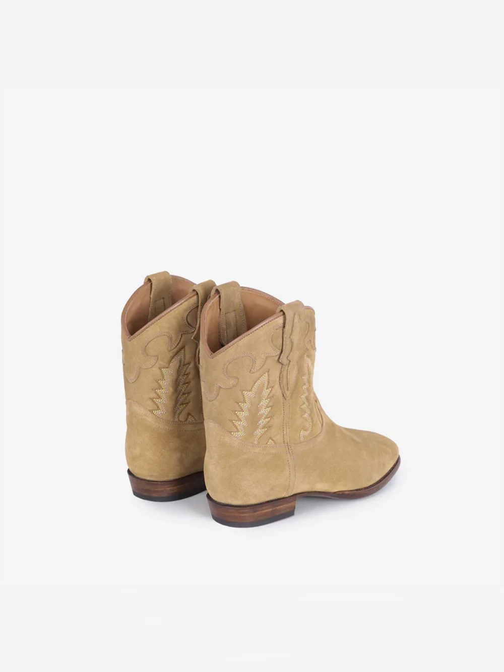 Les bottines Santiag Early Midnight Tan en daim de la marque Shiloh Heritage sont entiÚrement fabriquées à la main.