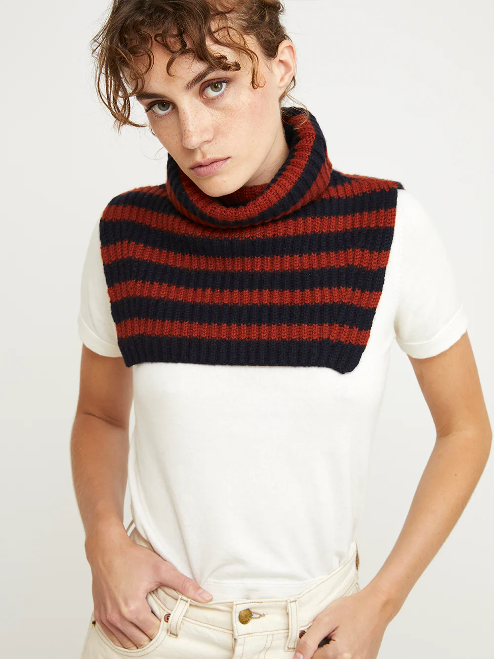 Col Grace BY MARIE Collection. Ce col en cachemire et laine peut se porter sous vos pulls ou vos manteaux. Une plaque dorée embossée du logo BY MARIE est cousue au dos du col.