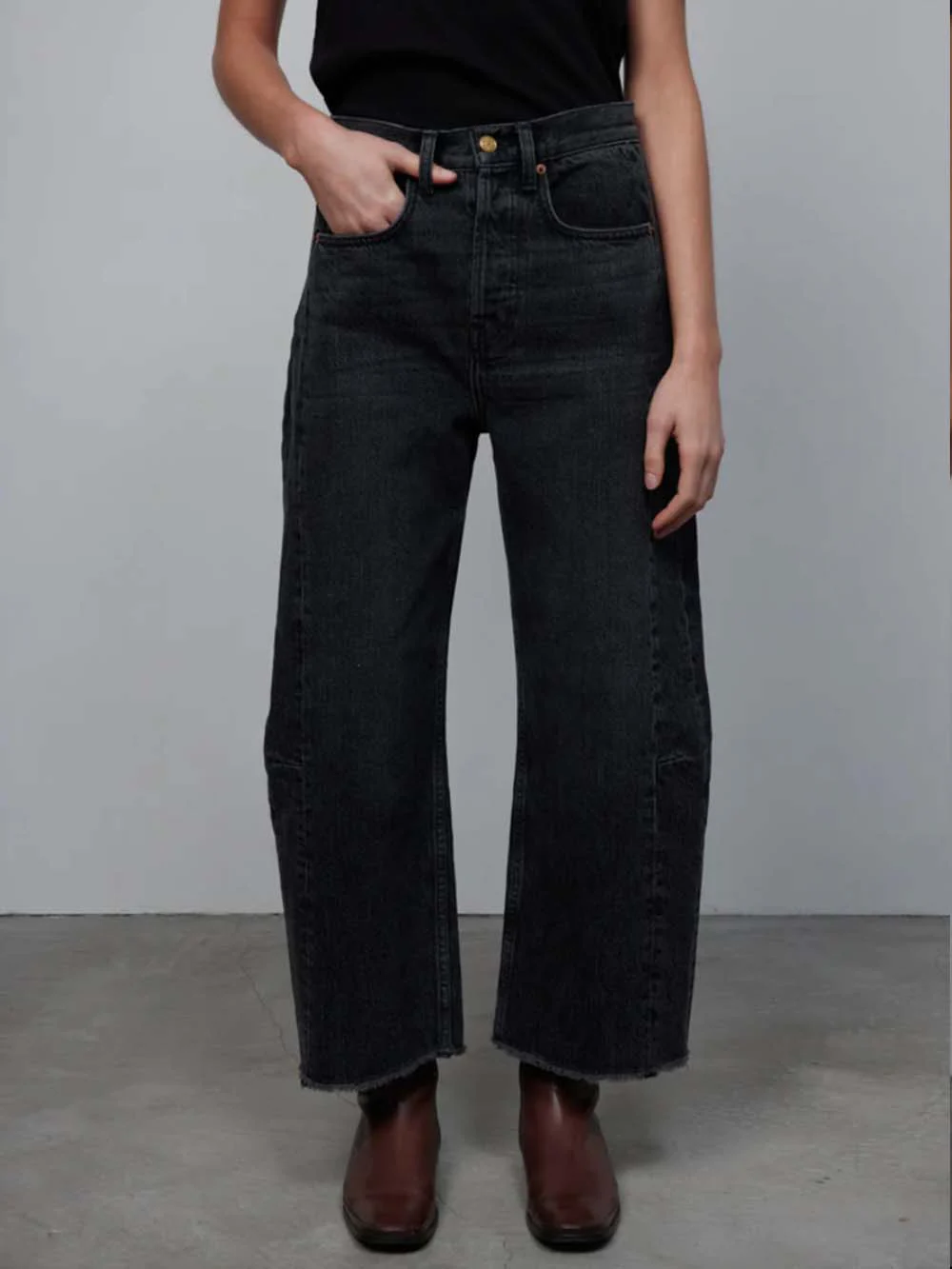 Jean Lasso Bsides. Ce jean coupé dans un denim en coton épais lavé jusqu'à obtenir un noir mat. Cette pièce à la taille mi-haute et aux jambes larges, légèrement courtes avec un ourlet sur le bas, lui assure un look décontracté.
