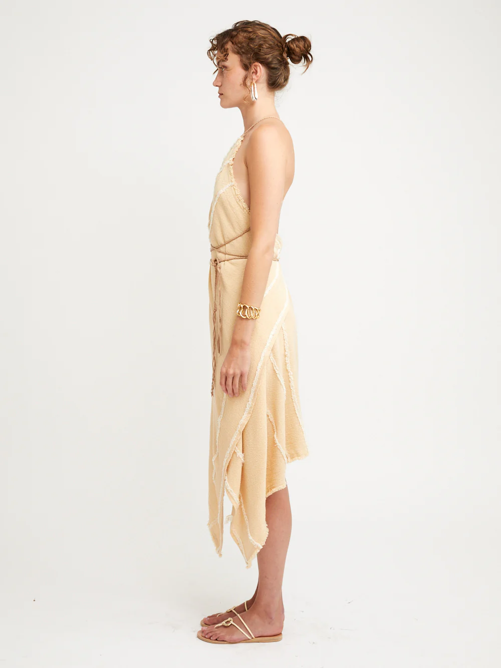 - Détails en coton artisanal- Ceinture et liens en cuir tressé assortie