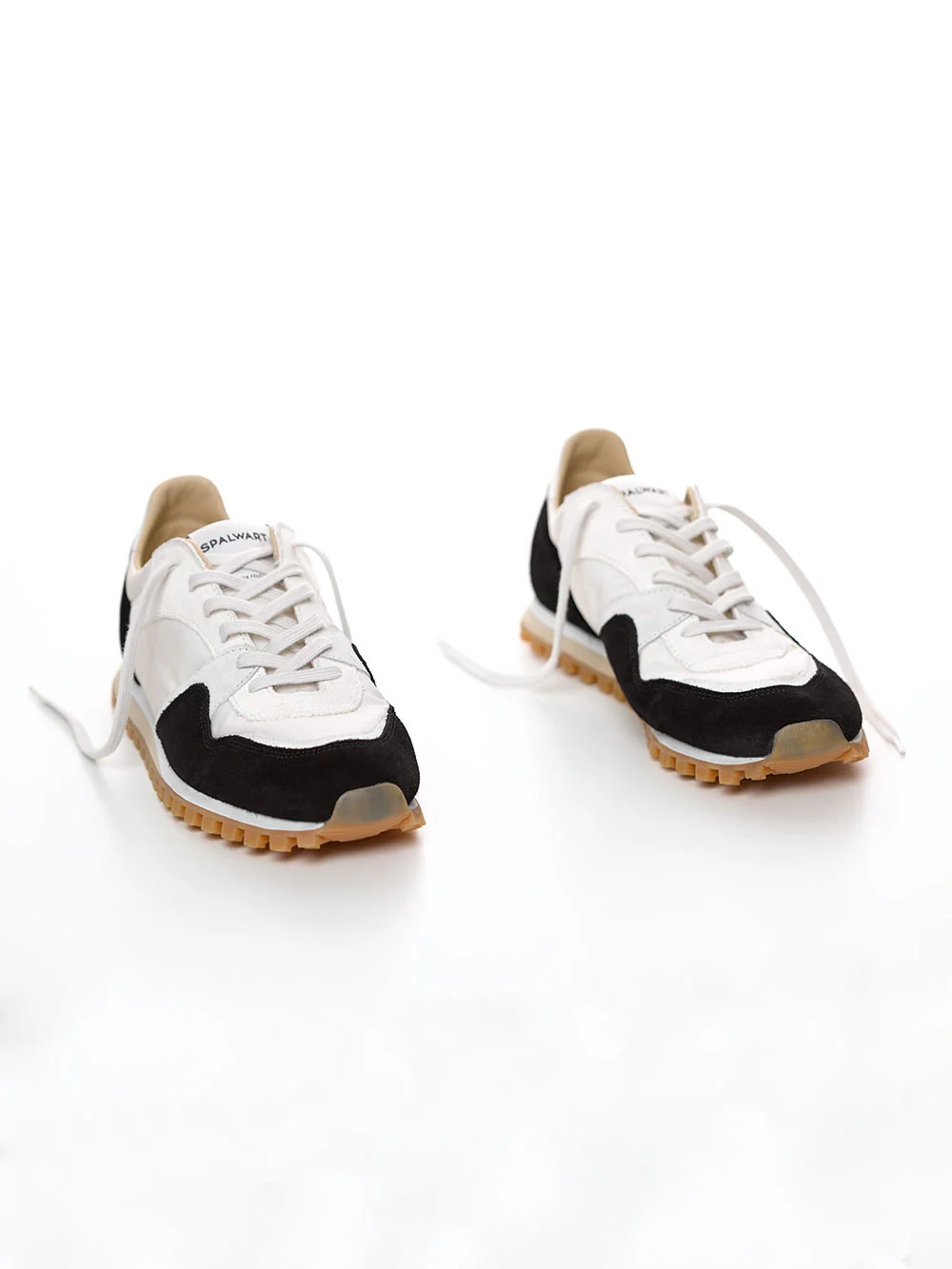 Marathon Trail Low Mix Spalwart. Ces sneakers basses couleur black sont réalisées en nylon et en cuir suédé. La basket est a bout rond et se ferme par des lacets blancs. Le logo Spalwart est tissé sur la languette rembourrée. La semelle crantée est en caoutchouc.