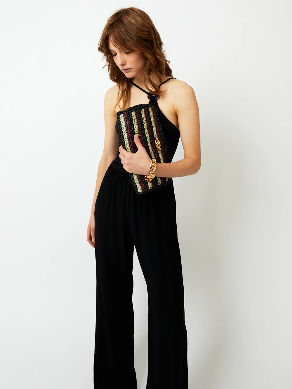 La pochette Uptown en raphia de confection artisanale, s’associe à la collection emblématique Cophéa de Gas Bijoux, avec son maillon bombé doré à l’or fin.