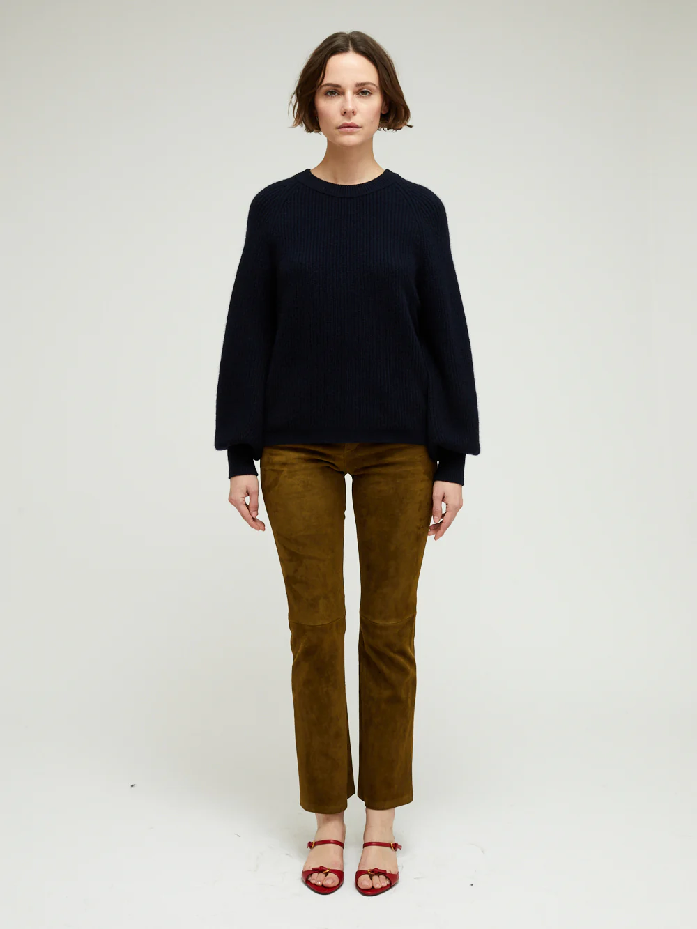Pull Marlow BY MARIE Collection. Ce pull court en 100% cachemire 4 fils a des manches bouffantes resserrées au niveau des poignets. La piÚce a un col rond à bord cÎtelé, une plaque dorée embossée du logo BY MARIE est cousue au dos du col. Le modÚle existe en plusieurs coloris.