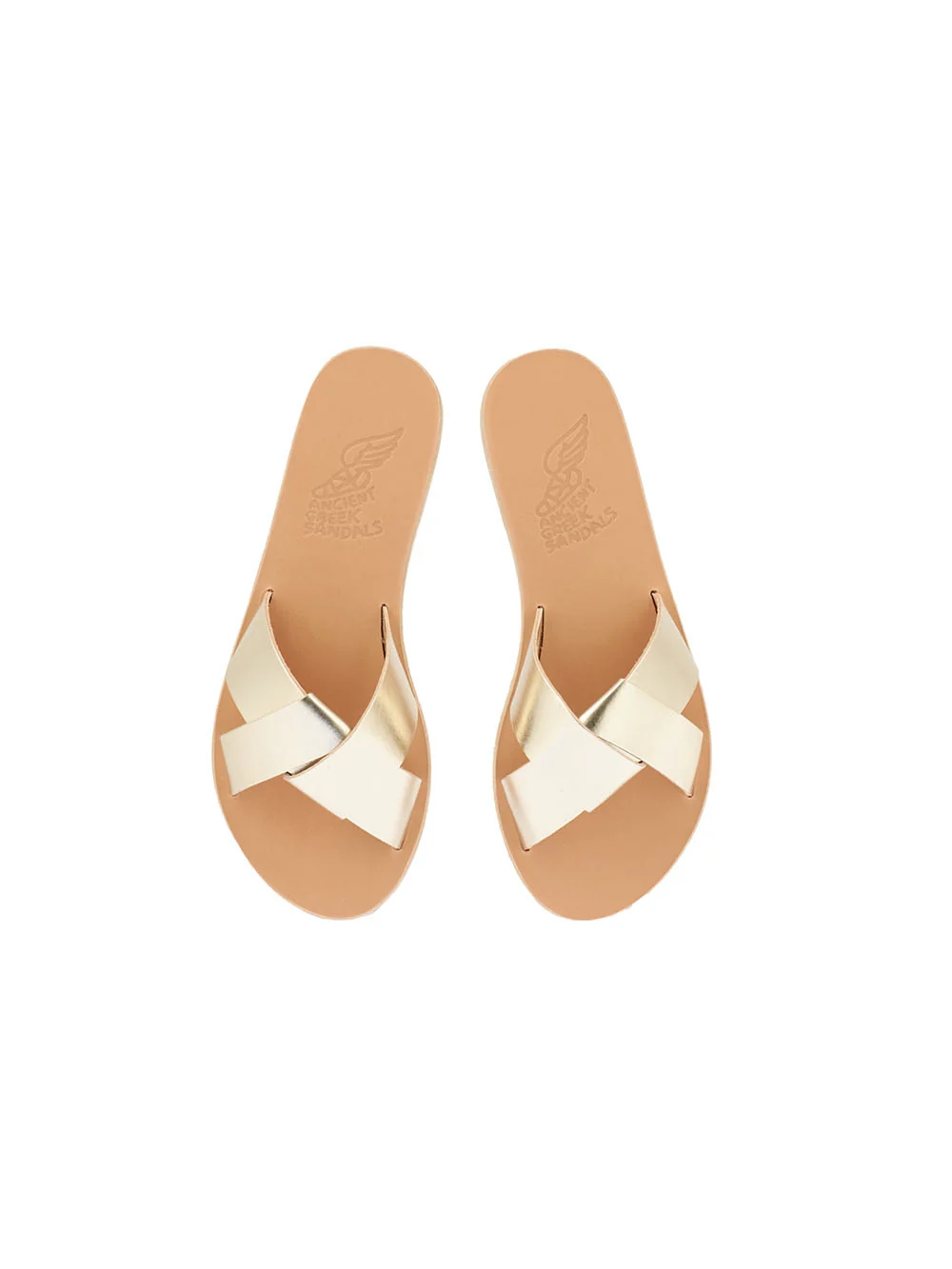 Sandales Whitney Ancient Greek Sandals. Cette sandale couleur métallique présente des boucles entrecroisées. Chaque modÚle Ancient Greek Sandals est fabriqué artisanalement en GrÚce.