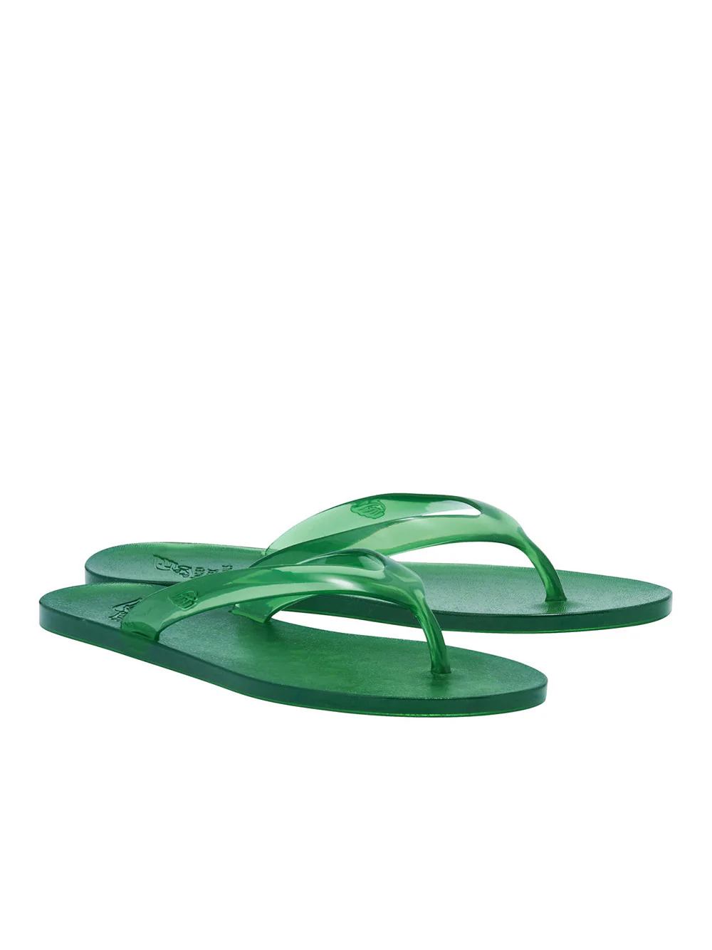 Tongs Jelly signées Ancient Greek Sandals confectionnées PVC translucide de couleur verte. Une paire de tongs confortable, un classique de la garde robe estivale.