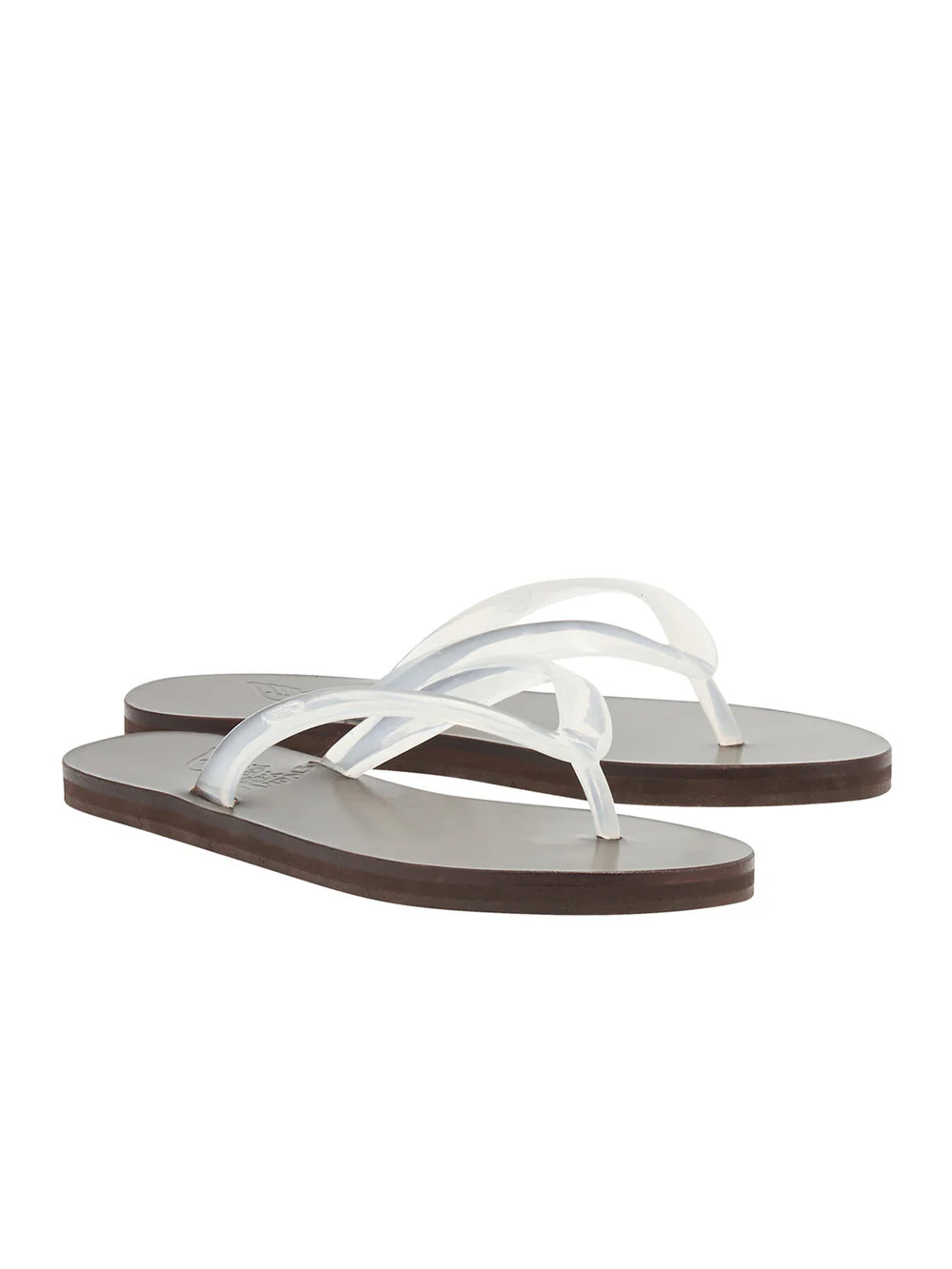 Sandales Saionara Jelly signĂ©es Ancient Greek Sandals confectionnĂ©es en caoutchouc transparent montĂ© sur une semelle en cuir noir.Â
