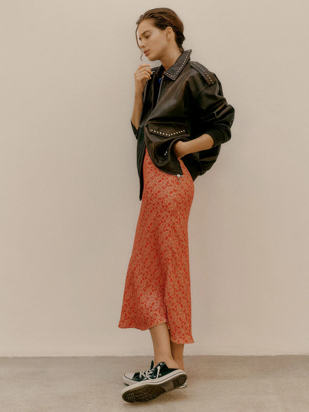 Veste Flight signĂ©e Monoki confectionnĂ©e en cuir marron dĂ©corĂ© de strass au niveau du col, des Ă©paules et des poches. Une veste dont la coupe est inspirĂ©e des vestes d'aviateur.Â
